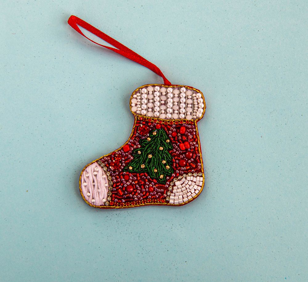 Approximately 2.5 to 3 inches with a 3 inch hanging loop. Hand beaded/sewn in India with glass beads and sequins. (where applicable). Some have turkey feathers.
