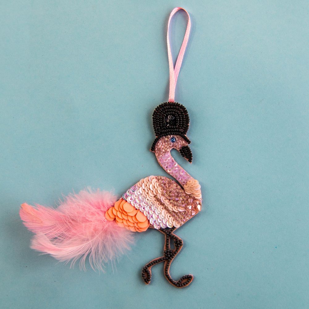 Beaded Ornament - Tophat Flamingo